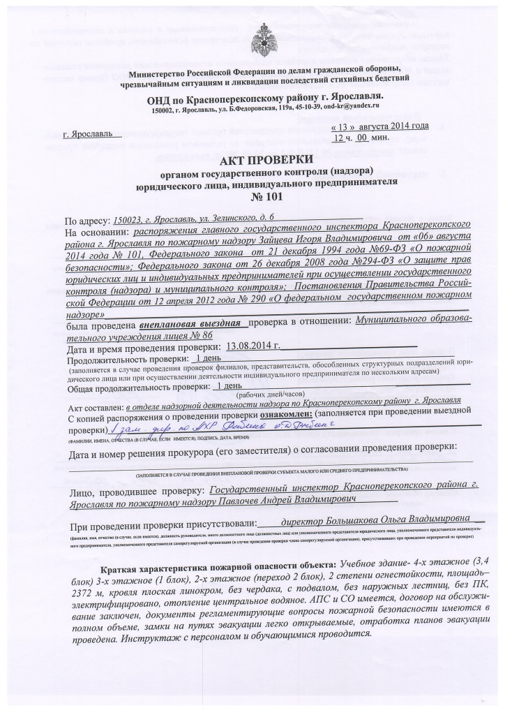 Акт проверки Госпожнадзор от 13.08.2014 Лист1