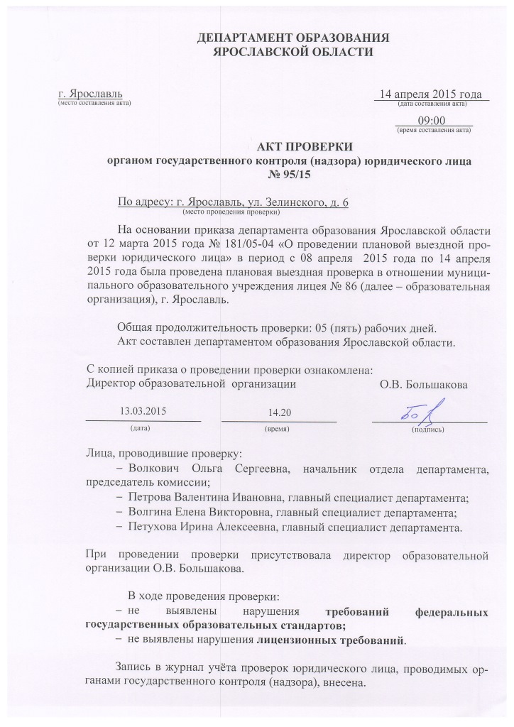 Предписаний органов, осуществляющих государственный контроль (надзор) в сфере образования, у лицея в 2012-2013 учебном году не было.