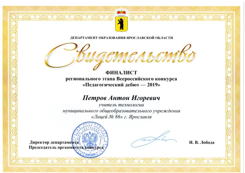 Учитель технологии и технического черчения муниципального общеобразовательного учреждения «Лицей № 86» Петров Антон Игоревич с блеском выдержал все испытания и стал лауреатом конкурса!