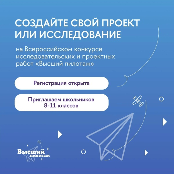 «Высший пилотаж» — это конкурс исследовательских и проектных работ для школьников 8–11 классов. Участники выбирают направление, формулируют идею, проводят исследование и защищают его перед экспертами. Для участников доступны различные направления от физики и экономики до лингвистики, дизайна и бизнес-информатики. Регистрация и приём работ уже открыты. Приём работ продлится до 26 января (21 января — на направлении Спутникостроение и геоинформационные технологии: Terra Notum). Финалисты встретятся весной в Москве и в кампусах НИУ ВШЭ. Подробности на сайте https://olymp.hse.ru/projects