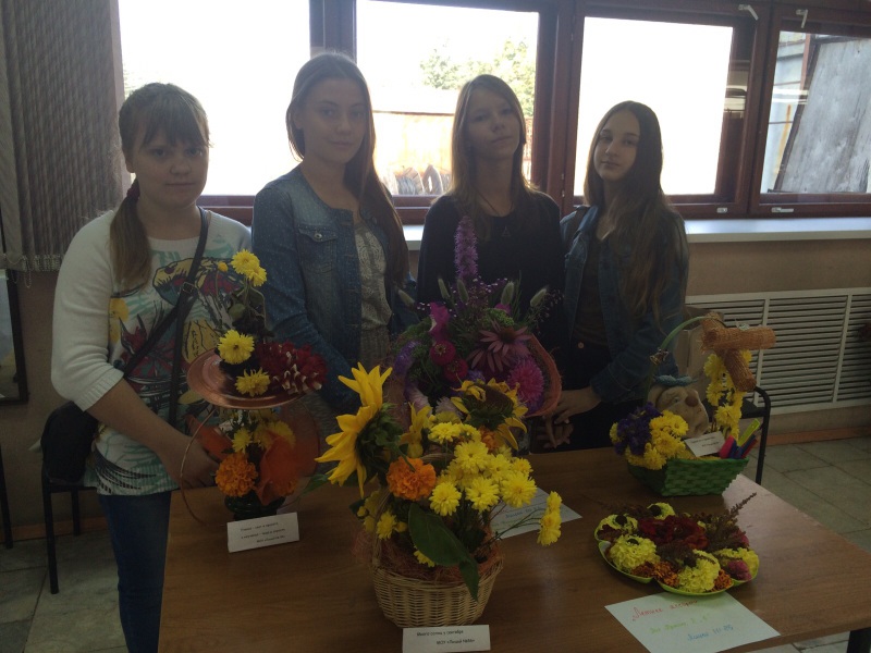 - Ефимова Мария, Ефимова Дарья, Колюшникова Анна, Сазонова Злата, 7 «А» - букет «Настроение цвета фукси».